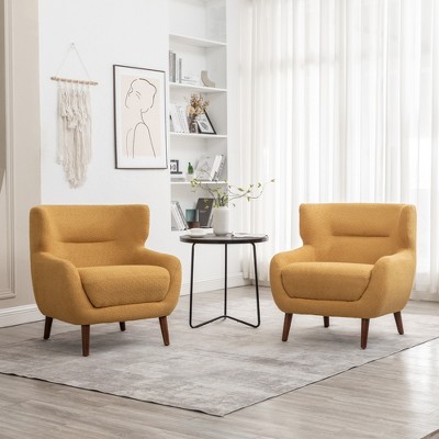 Modern Floral Accent Chair with Retro Wood Legs | Comfy Upholstered Armchair for Living Room, Bedroom & Office,Floral Yellow-- Frevyn