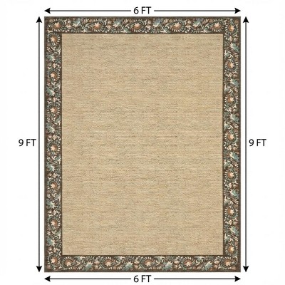 5*7FT Modern Floral Area Rug, Washable Low-Pile Stain-Resistant Non-Slip Carpet for Bedroom Living Room Farmhouse Decor-Beige