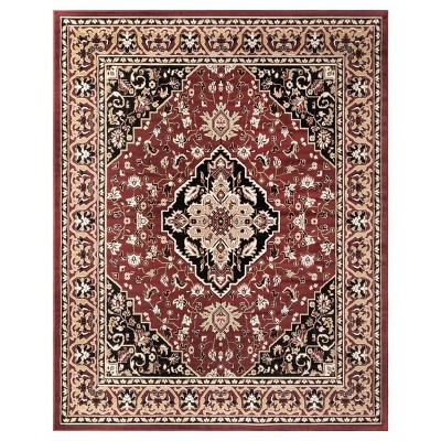Very thin, stiff, plasticky rug. Also the design is not symmetrical. Hard to get wrinkles from shipping out. Overall cheap looking/feeling. I am disappointed because I've purchased large area rugs from target for a similar price point and this was of far lower quality.