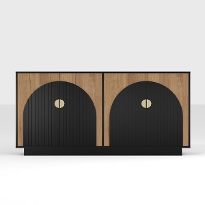 - 【Premium & Sturdy Construction】 Crafted from high-quality, weight-bearing particleboard and reinforced with a wood frame, this storage cabinet is built for durability.Its unique symmetrical arch design and generous size (63"L x 19.96"D x 30.3"H) create a substantial.