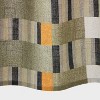A: The geometric print includes green, white, orange, and black hues for a striking design.