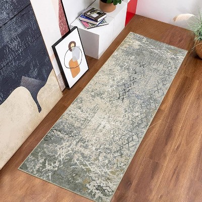10x13 Modern Geometric Area Rug, Machine Washable Large Carpet with Non-Slip Backing for Living Room, Dining Table, Bedroom Home Office Decor, Blue