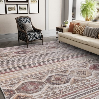 10*13FT Modern Geometric Low-Pile Area Rug: Non-Slip Machine Washable Stain-Resistant Carpet for Living Room or Dining Room- Off white