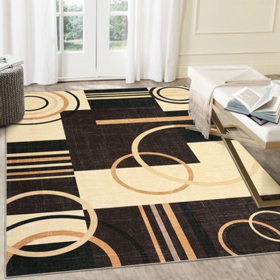 Modern Geometric Rug, Brown, 10x13, Soft Non Slip Thin Washable, Large Area Rug for Multi Room