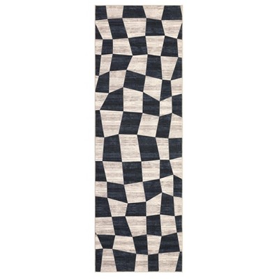 2x6 Modern Geometric Rug, Blue Thin Low-Pile Non-Slip Washable Indoor Carpet for Living Room, Bedroom, Kitchen & Entryway