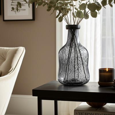 Modern Glam Glass Vase - Handcrafted Decorative Glass Flower Vase for Home, Office, Bedroom & Living Room - Elegant Finish - 12" Gray & Silver