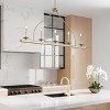 - Modern Gold Linear Chandelier Showcasing a sleek, rectangular iron frame in a stylish light gold finish, this 5-light linear chandelier brings a blend of timeless elegance and contemporary style to dining rooms, kitchens, and living spaces.