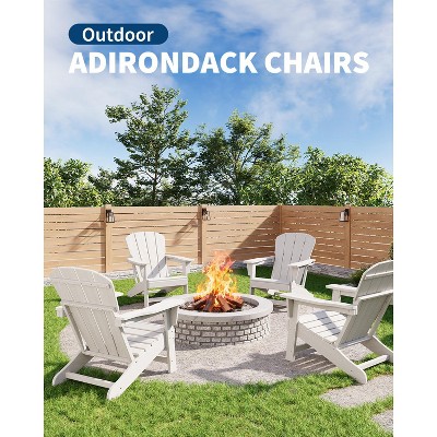 Modern HDPE Adirondack Chair Set of 4 with 2 Side Tables - Oversize 380LB,Weather Resistant,Firepit,Wooden Texture for Deck,Pool,Porch,Blue