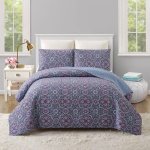 Wrap yourself in comfort with this 100% cotton quilt set, featuring a stunning medallion floral pattern in rich lavender and blue tones. Crafted for all-season comfort, this lightweight quilt set provides the perfect balance of warmth and breathability. The intricate floral design adds a timeless, elegant touch, while the reversible feature allows you to switch up your style whenever you choose. This quilt set is also machine washable, making maintenance a breeze.