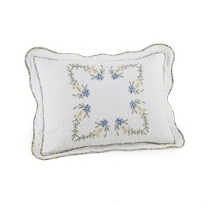 Add a classic touch to your bedroom with the Heather pillow sham. Coordinates with the Modern Heirloom Heather Bedspread. Sprinkled with floral motifs, this piece is a lovely addition to any home. 100% cotton face and fill with a brushed polyester backing. Machine wash, cold water on gentle cycle. Tumble dry, low heat. Do not use bleach.