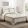 Enhance your space with this elegant, traditional pillow sham designed to coordinate with the Harper Bedspread (sold separately). Delicate embroidered green floral scrolls gracefully accent the off-white ground. The floral printed border is finished with a gently scalloped edge for a romantic touch. Made with a 100% cotton face and fill, complemented by a soft brushed polyester backing for added comfort. Coordinating Harper bedspread and decorative pillows sold separately.