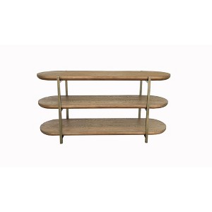 Modern Latte Console Table, Metal Accents & Open Storage Shelves