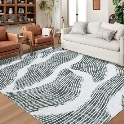 Modern Living Room Rug – Abstract Geometric Stripe, Soft Non-Shedding, Washable Non-Slip for Bedroom