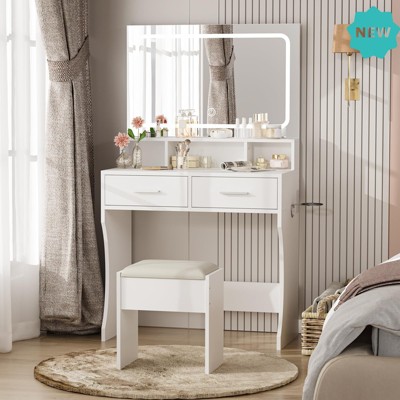 - Sturdy MDF Construction & Decor-Friendly Design: Crafted from high-quality MDF board, this white makeup vanity ensures strong stability and long-term durability, supporting daily use without wobbling.