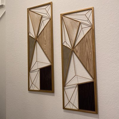 Modern Metal Abstract Wall Decor Set of 2 Brown: Geometric Iron Art, Vertical Display - CosmoLiving by Cosmopolitan