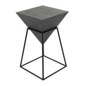 - •Minimalist inspired style of this accent table features a pyramid table top with a slender frame in an open style that allows for additional storage underneath