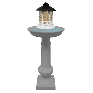 Invite birds to play in your backyard with our Modern Round Cast Aluminum Metal 40-in Gray Bird Bath and Bird Feeder Combo. This modern style sculpture will look good in your yard alone or among other pieces. It's perfect for attracting birds to bathe, drink and eat! This bird bath takes only a few minutes to set up making it a perfect gift for anyone. Unlike the other cheap low quality concrete and plastic resin bird baths, this one is constructed out of all solid cast aluminum. The weight of the bird bath is perfectly balanced making it easy to move and not affected by wind. We offer this bird bath and bird feeder combo in four different colors, white, Gray, black and brown. Dimensions for the bird bath are: 16" L x 16" W x 40" H, 21 lbs.