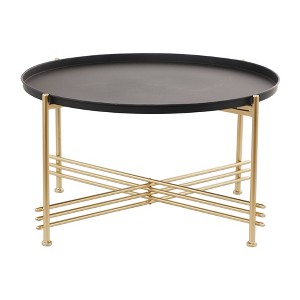 Modern Metal Coffee Table Gold - Olivia & May: Round Glossy Black Tabletop, Criss Cross Base, Non-Slip Glider, Living Room Decor