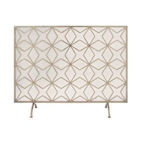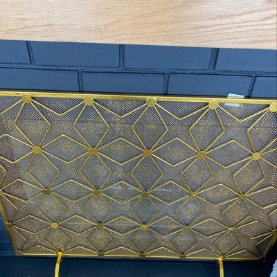 Keep those straw ambers at bay with this fire place screen. Adding style even when the fire isn't lit, this fireplace screen adds style as well as function. Add a hint of charm with this modern mesh screen covering your fireplace or an empty wall to eliminate negative space. Designed with felt or rubber stoppers at the base that prevent scratching furniture and table tops, as well as sliding around. This item ships in 1 carton. Please note that this item is for decorative use only. This fireplace screen features paint that can resist heat up to 600 degrees.. Suitable for indoor use only. This item ships fully assembled in one piece. Item features a single panel screen. This is a single gold colored fire spark guard. Modern style.