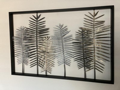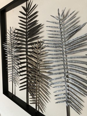 Modern Metal Leaf Wall Decor with Black Frame Black - Olivia & May: Iron Nature-Inspired Art, Indoor Vertical Display