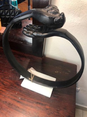 Modern Metal & Marble Sculpture - Contemporary Abstract Home Decor - Artistic Aluminum Statue for Living Room, Office, Bedroom - 15" Black & White