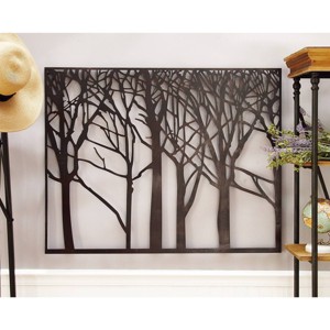 Modern Metal Nature Wall Decor Black - Olivia & May: Vertical Framed Mixed Media Art, Indoor Use
