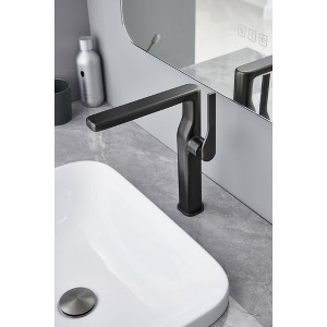 This modern minimalist bathroom faucet is a striking addition to any contemporary bathroom setting. Its sleek matte black finish and attention to detail in craftsmanship make it both a functional and stylish choice. The streamlined design not only enhances the aesthetic appeal but also ensures ease of use and water efficiency, making it a perfect blend of form and function.