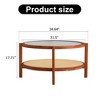 Modern minimalist circular double-layer solid wood coffee table, craft glass tabletop, second layer material: PE rattan, solid wood frame