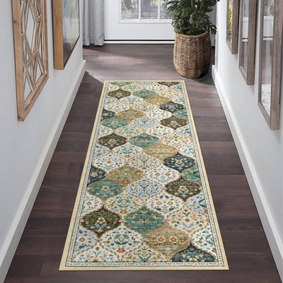 Modern Plaid Runner Rug 2x6 Non-Slip Washable Kitchen Runner Rug, Low Pile Non-Shedding Floor Carpet, Stain Resistant Long Accent Rug