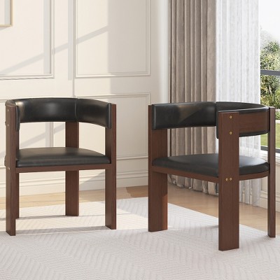 Modern PU Leather Upholstered Kitchen Chairs Set of 2 with Accent Curved Backrest and Rubber Wood Frame, for Kitchen¡¢Dining Room or Living Room