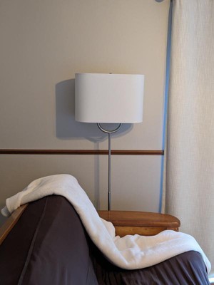 I absolutely love this Modern Ring Floor Lamp by Threshold. My living room tends to get really dark and I have needed a lamp that provides more light then what I currently have. I’m extremely happy with this lamp. It has been exactly what I have been looking for and needed. What I like about this lamp is the shape of the shade which fits in well with my current decor. The silver makes this lamp stand out and gives it a stylish look. Set up only took a few minutes and was very simple. The light that admits throughout my living room makes the room much brighter and more inviting. I would highly recommend this lamp as a must buy.
