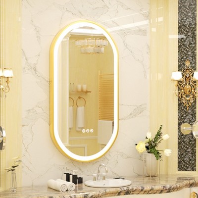 Modern Round Gold Metal Bathroom Vanity Mirror – Wall Mounted