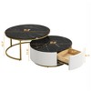 The Round Modern MDF Top Nesting Coffee Table with Fluted Design and Drawer combines functionality, style, and elegance. Its nesting design, convenient drawer, and black and gold finish make it a versatile and attractive addition to any living space. Enhance your home decor with this sophisticated coffee table set today!