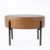 Our Modern Metal Faux Leather Ottoman makes a statement in any room. Upholstered in our rich Carmel faux leather fabric, the sleek modern black metal legs of this ottoman add the perfect visual complement. Use as a footstool in the family room, as a coffee table in the living room, or pair two together for extra seating. Easy to assemble and maintain. Please note that fabric and wood colors may appear slightly different due to variations in lighting or screen settings.