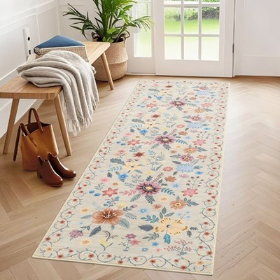 Modern Rug Runners for Hallways 2x6 Washable Kitchen Runner Rug Non Slip Striped Soft Low Pile Thin Long Carpet for Bedroom, Beige