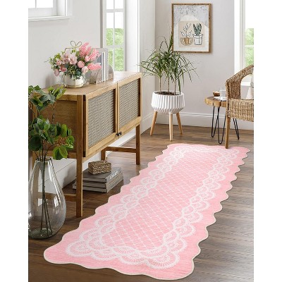 Washable Scalloped Area Rugs Modern Bordered Floor Mat