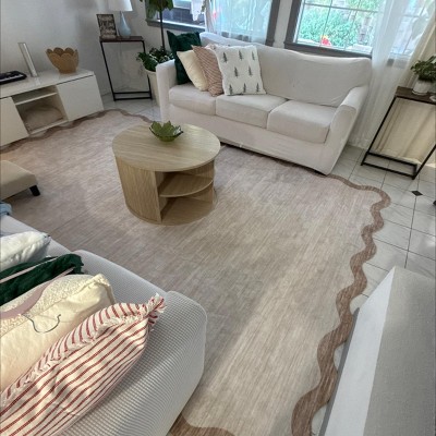 2'x6' Modern Scalloped Living Room Rugs, Washable Solid Soft Bedroom Carpet Non Slip, Indoor Contemporary Home Decor Rugs, Beige
