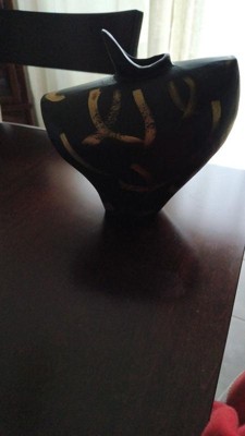 Modern Sculptural Metal Vase for Living Room Decor - Decorative Abstract Home Accent for Bedroom, Office, and Table Decor - 8", Black