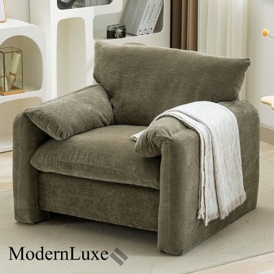 Modern Sectional Sofa Single Sofa Upholstered Cloud Sofa with Comfy Double Layer Upholstered Seat Cushion, Green - ModernLuxe