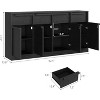 - Elegant Showcase: The sideboard buffet cabinet with 4 drawers showcases dinnerware and decor, adding elegance and openness to any room, while the wooden parts provide privacy for less frequently used items, keeping your space organized and tidy.