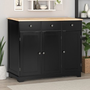 Modern Sideboard with Solid Wood Top, 3 Drawers, Doors & Adjustable Shelf for Coffee Bar