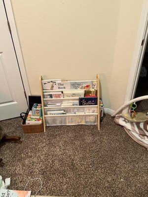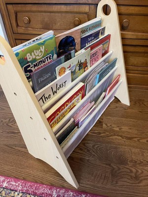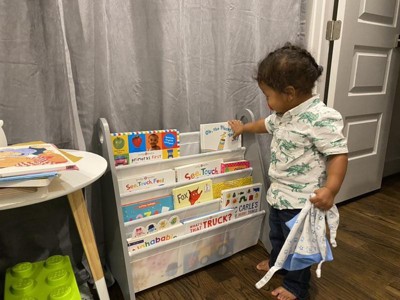 [This review was collected as part of a promotion.] My kids absolutely love their new bookshelf sling! This bookshelf that is white looks absolutely amazing in the room and organizes all their books. My kids are very much happy and looking forward to reading time and love to organize their books in different order. The sling itself was simple to put together and took me only about 10mins. It has a circular handle on the top to grab and position it wherever you like. We're super happy with this cool bookshelf organizer!