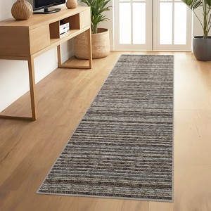 - - Stylish Modern Rug: Featuring a transitional striped pattern and abstract-inspired design, this machine-woven rug combines contemporary aesthetics with a printed braid style, effortlessly enhancing your home decor in any room