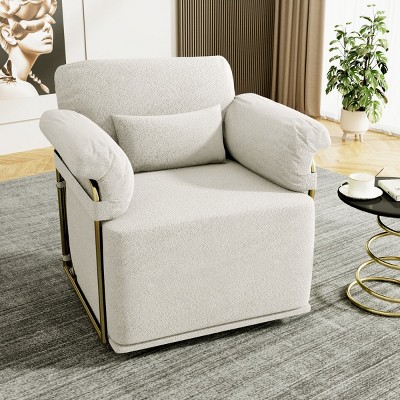 Modern Style Accent Chair with Gold Metal Base,Black Velvet Upholstered Leisure Chair with Open Armrest, Armchair-Koiai