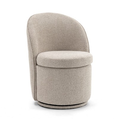 Modern Swivel Barrel Accent Chair, 360 Degree Velvet Upholstered Armchair with Striped Backrest & Plush Padding, 2 PCS, Velvet Beige