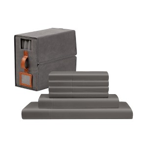 Modern Threads 6-Piece Grey Satin Sheet Set with Organizer Box, Full