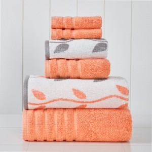 Modern Threads 100% Cotton Bath Towels Set of 6,Organic Vines- Coral - 2 of 4Modern Threads 100% Cotton Bath Towels Set of 6,Organic Vines- Coral - 3 of 4Modern Threads 100% Cotton Bath Towels Set of 6,Organic Vines- Coral - 4 of 4