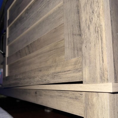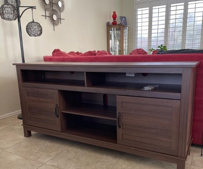 The stand looks good, but one of the back pieces was cut too long so the top panel doesn’t sit flush with the rest of the stand due to the measurements issues. The doors are also not supported well and do not close properly.