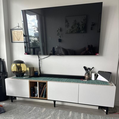Simple assembly, fantastic appearance! It's the perfect length to complement the sizable TV my husband insisted on keeping unmounted. The cupboards provide ample storage for our collection of board games. A practical and stylish solution for our living room! " "