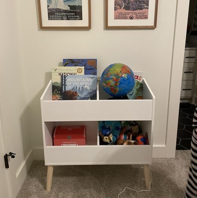 Help keep your kid's room organized in attractive style with this Modern Two-Shelf Toy Bin from Pillowfort™. Set on four cream-color legs, this white toy bin adds a modern look to your kid's space while giving them a place to neatly store toys away out of sight. Designed with two shelves with divided compartments for easy organization, this Montessori-style toy bin offers ample space for their toys while adding a cute accent to their bedroom or playroom.